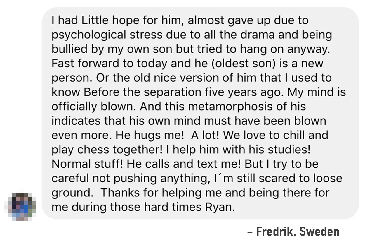 Ryan is a communication and reconnection strategist who has helped parents, families, and professionals in over 25 countries navigate high-conflict separation, parental alienation, and child rejection for more than a decade.
