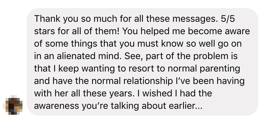 Unalienated provides education, communication strategies, and emotional support tools. It does not promise or guarantee reconciliation, legal outcomes, or specific relationship changes.